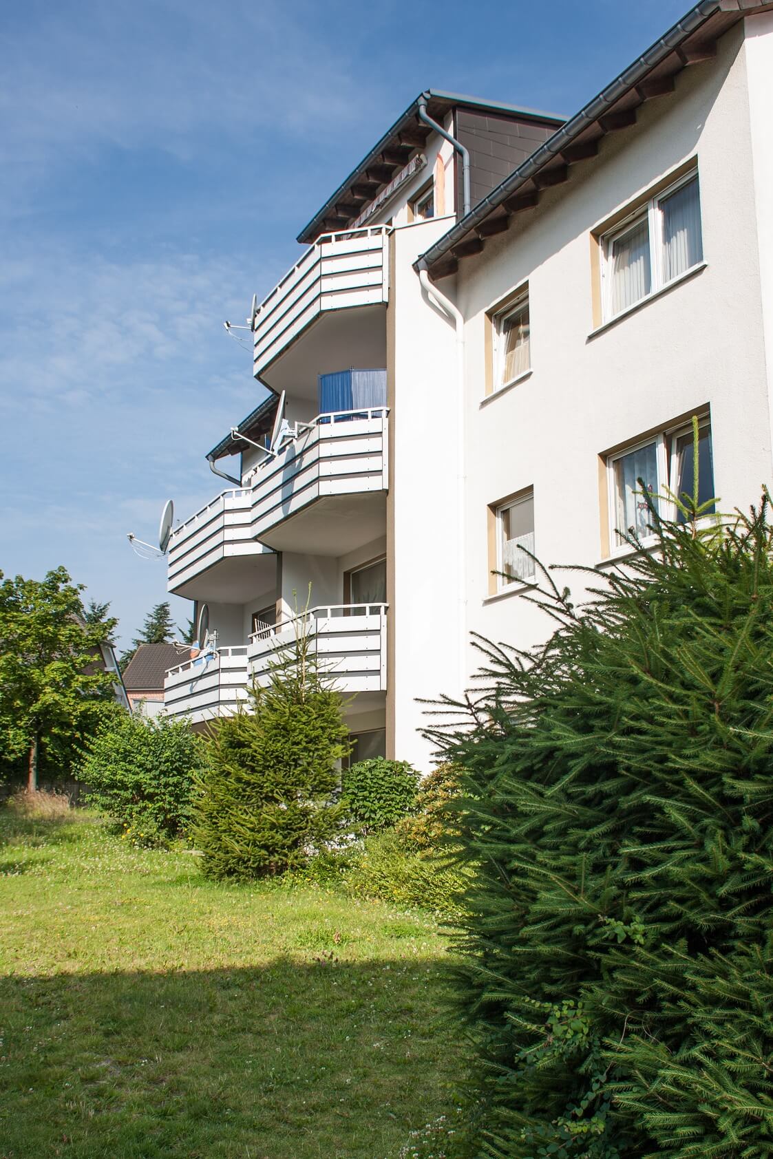 Das Haus wurde 1995 gebaut. Hinter dem Haus sind große gepflegte Rasenflächen angelegt, die durch alle Mieterinnen und Mieter genutzt werden können. Die Wohnung befindet sich in einem gepflegten Haus mit nur 9 Wohneinheiten.